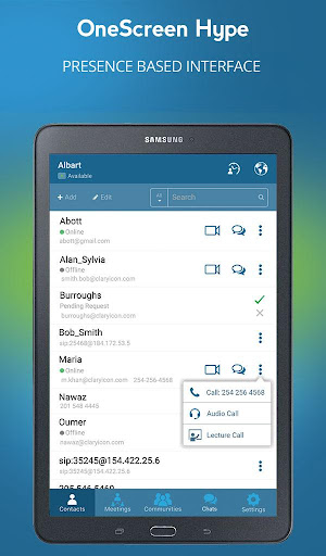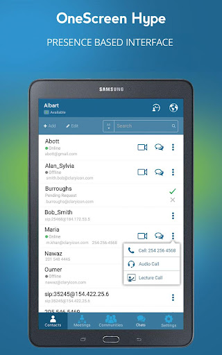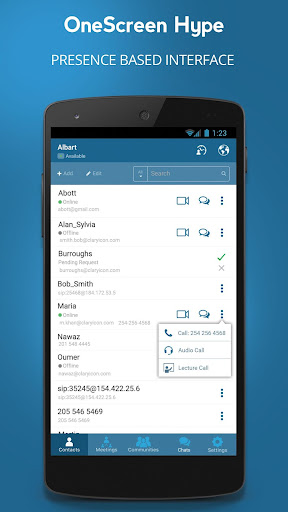 · See real time presence status of contacts