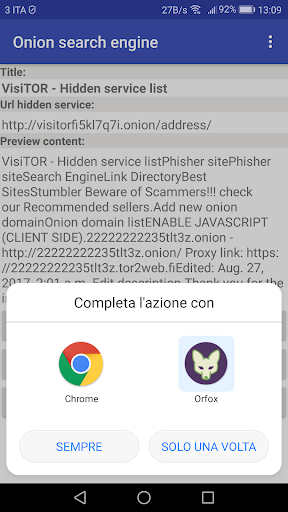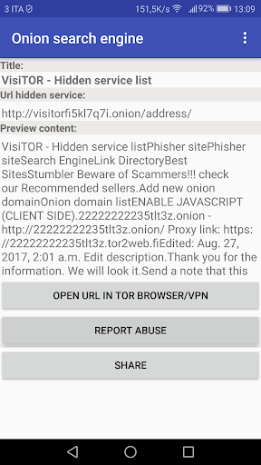 The app lets you search the sites in the deep web with the keywords and shows you a site tab with title, url and an preview of the content.