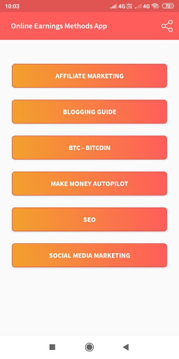 Online Earnings Methods free guide app will introduce you with a bunch of money earning ways. You can learn how to earn money from work at home to learn some skill.