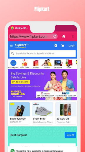 All the websites shown in the Flip Online Shopping - All In One kart are not owned by the developer of this app and have gone through proper permission procedure to promote their websites via various affiliate networks.