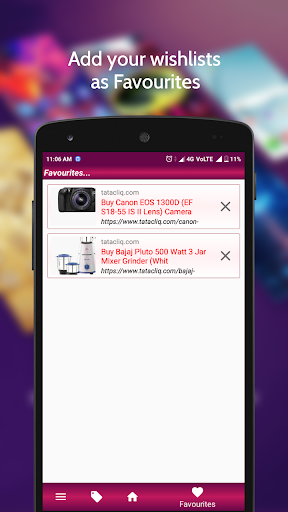Add favorites with screen shots. Share favorite with others. View latest offers. Save your phone memory.