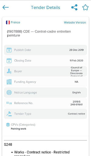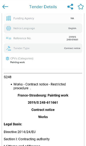 - Sharing tenders in all Social Media and Messaging apps easily.