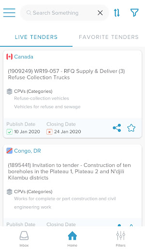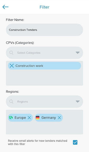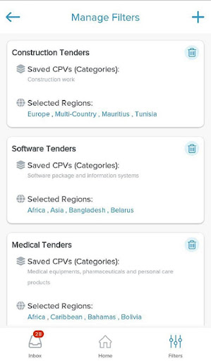 - Accessing to your business tenders easily by using your previously created filters.