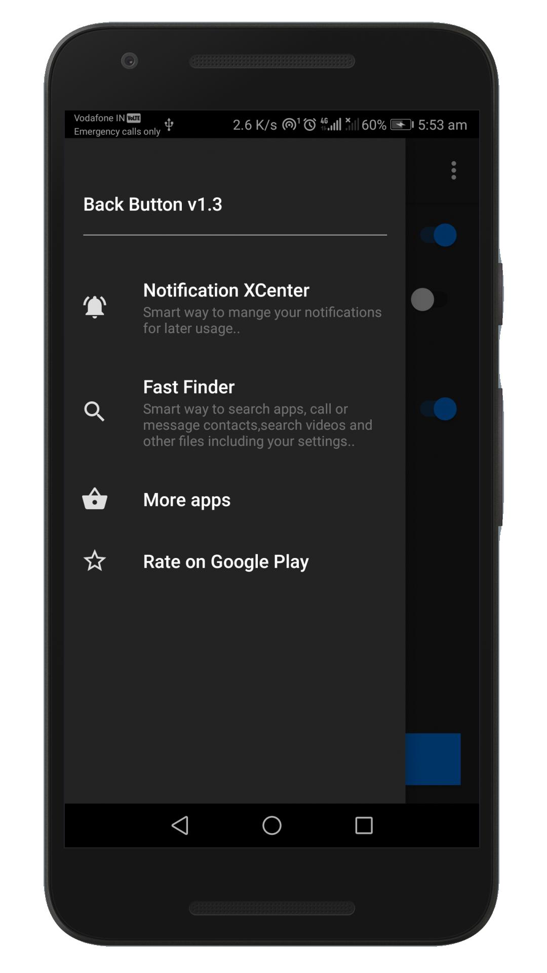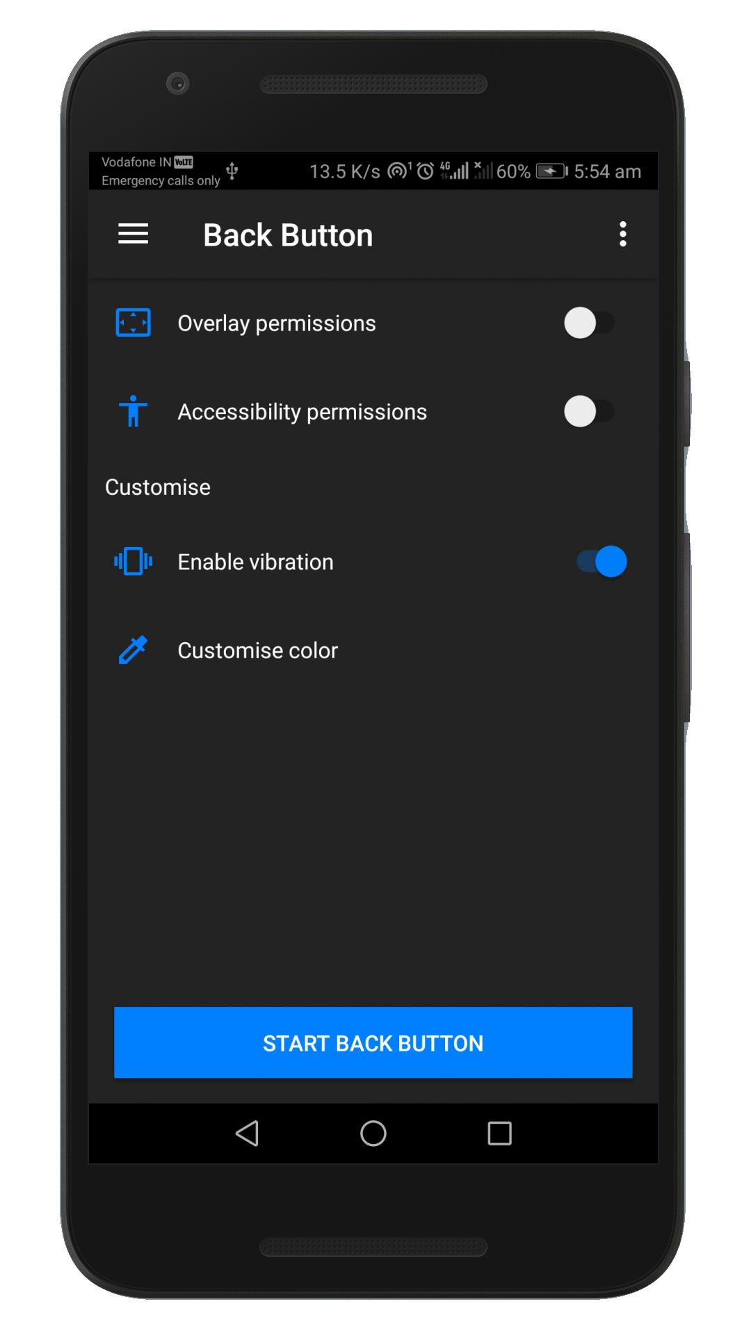 If the physical buttons of your phone can not work properly, Only Back Button can continue work your phone with simulating same as system back button.