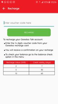 • In order to make international calls through the App recharge from the app using existing Ooredoo Oman recharge vouchers.