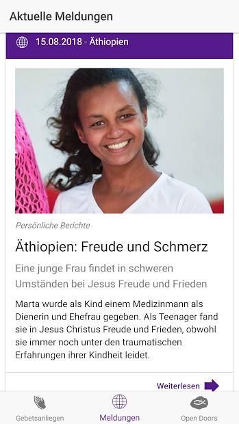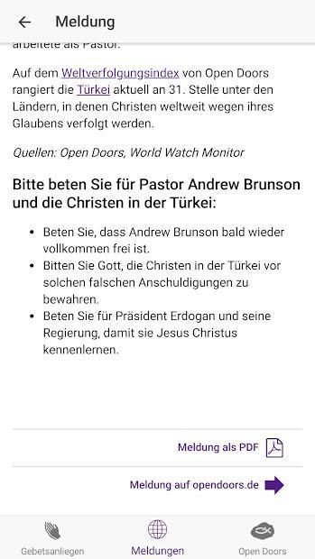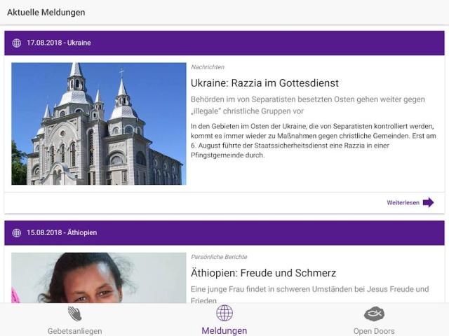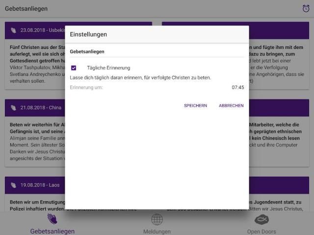 With the official app of Open Doors Germany we want to let you go, targeted to pray daily for persecuted Christians. The app includes the following features: