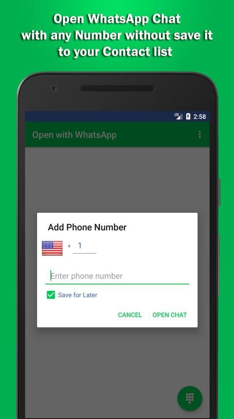 Just with one step you can open chat of any phone number who use whatsapp.