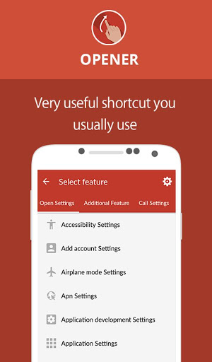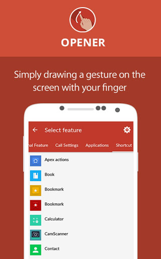 Specifically, the app enlists Open Settings, Additional Features, Call Settings, Application and Shortcuts. Further, Settings include all the settings of the phone that can be added to Opener shortcuts individually with the user-defined gesture. There is no need to go to the phone settings and scroll down to reach a specific setting. You can also open recent tasks, WhatsApp conversation, the internet, home menu, and also, lock the device. Call settings include all the settings available in the phone irrespective of the phone operating system. With Application settings, you can access all the applications on the phone and pick up any of these applications to create a gesture shortcut. The shortcut feature allows you to add shortcut gesture of the applications. All these features in the application are listed below with their main functionalities: