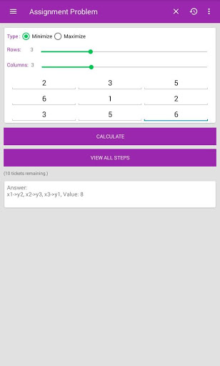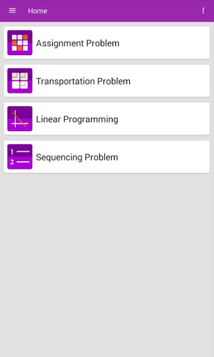 This app is Solver or Calculator for Operational Research(Industrial Management) problems like Assignment Problem, Transportation Problem, Linear Programming, Sequencing Problem and Game Theory.