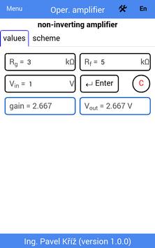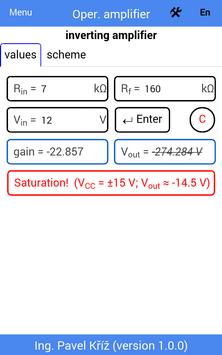 For all types of circuit enter the input values and the app counts gain (ACL) and Vout. It takes care with saturation.