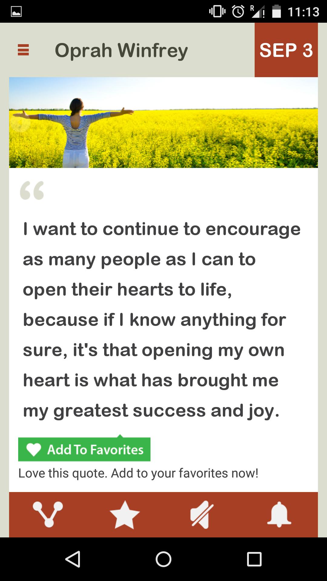 Oprah Winfrey Daily brings the wisdom of Oprah Winfrey to you in a form of Mobile App, wake up every day, with Oprah's laws of Attraction, starting today.