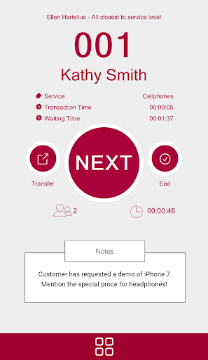 Your staff becomes more productive, by having information at their fingertips that makes it easier to provide great customer service. The Orchestra Connect app provides real-time status about waiting customers, customers currently being served and notifications on upcoming visits. There is also possibility to transfer customers as well as handle walk direct visits.