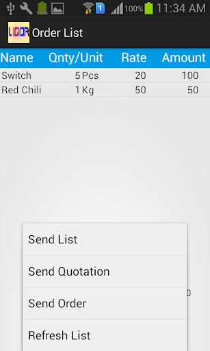 After sending this list you can ‘Refresh List’, to nullify all the selected Quantity, Rate and Amount and to make another list.