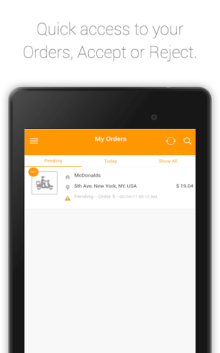 - Affiliated businesses receive visual and sound notification when orders arrive on your smartphone or tablet, even when the app is closed