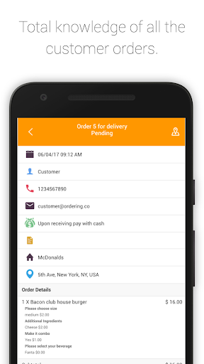 After the User orders on your website or native Apps, the business owner will receive the order directly on his phone or tablet.