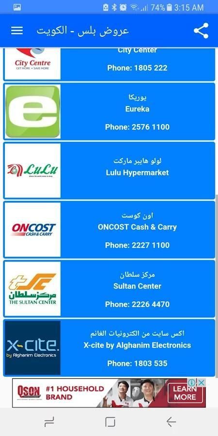 Al Ghanem X-cite offers, Carrefour offers, Geant offers, City Center discounts, Sultan Center offers, Gulf Mart discounts, Lulu Hyper Market offers, OnCost offers, Eureka offers , Al Rawdah Society offers, Da'iyah offers, Qadisiyah Society offers and more ...