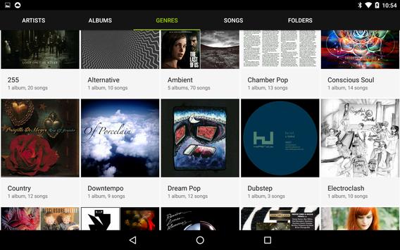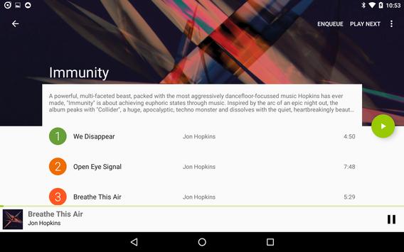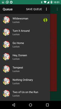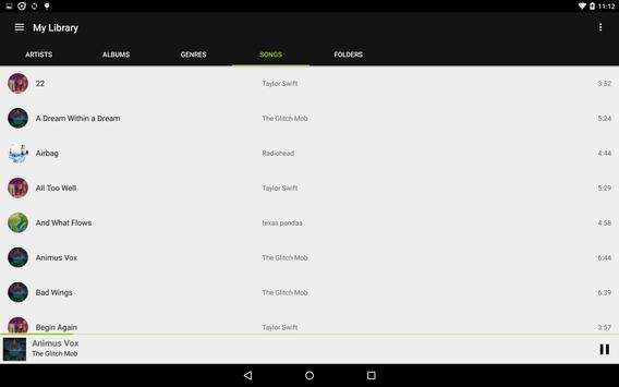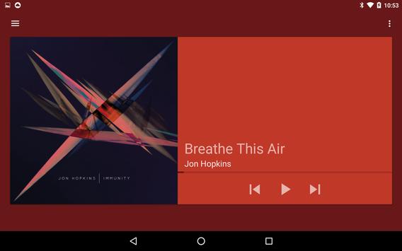 Full playback controls are in a thumb friendly right sliding drawer, to access swipe from the right edge an any screen, or long click on the play/pause button.