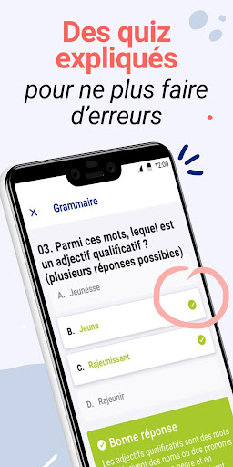 تم تنفيذها مع Aurore Ponsonnet ، مدرب إملائي وتم التحقق من صحته من قبل لجنة خبراء مشروع Voltaire ، C ' ؛ هو التطبيق النهائي للتعلم الفرنسي.تم تصميم محتويات الإملاء أو القواعد أو الاقتران لجميع المستويات. من الاتفاق والاقتران الضروري للتعلم الفرنسي.