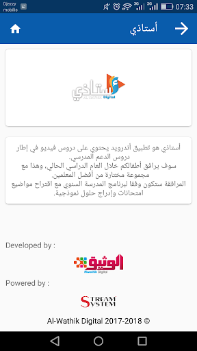 أستاذي هو تطبيق أندرويد يحتوي على دروس فيديو في إطار دروس الدعم المدرسي. سوف يرافق أطفالكم خلال العام الدراسي الحالي، وهذا مع مجموعة مختارة من أفضل المعلمين. المرافقة ستكون وفقا لبرنامج المدرسة السنوي مع اقتراح مواضيع امتحانات وإدراج حلول نموذجية.