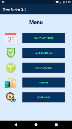 Over Under 2.5 Betting tips app helps you win every single day. Our team of experts provides daily winning predictions. Daily Over 2.5 ticket and daily Under 2.5 matches with highest odds and highest probability are selected and provided to you through our betting tips app.