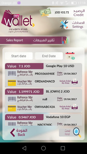 owvwallet is one station for all recharge cards . user can buy balance from re-Sellers directly , then he will be able to use that balance to buy any card like mobile cards and applications vouchers .... etc
