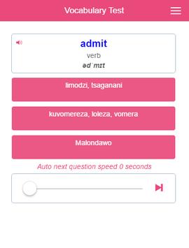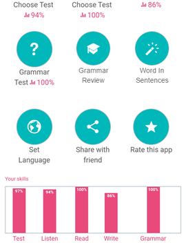 Oxford English Chichewa helps you learning English offline easily. It helps user to review vocabularies and performs multiple option testing. There are Vocabulary Test, Reading Test, Listening Test, Writing Test, Grammar Test and so on. Each Testing will record your skill and show the result on the top of screen for each session. It also keeps your results for all the time and show skill percentage by chart on the Home screen. First, My vocabulary and New vocabulary are empty. You have to perform Vocabulary testing to build the vocabulary list. each question you have 3 choices. If you choose the correct answer, that word will be transferred to your vocabulary list. On the next question or from vocabulary list, you can add any word to the study list to learn it later. You can choose Vocabulary Test to hear the voice, reading pronunciation and guess the meaning, Listen Test to hear the voice and guess the answer, Read Test to read the meaning and guess the English word, Grammar Test to read the question and choose the correct option, Writing Test to hear the voice and type the word in English. Each 4 seconds, you will hear the voice and suggestion for that word. You have 15 seconds to type that word correctly. Your testing result will be showed in real time. There are two more Testing options are Correct Answers Test which will test your known words, if you choose the wrong answer, that word will be removed from your vocabulary list. Wrong Answers Test to test words which you answered in the past. Grammar Review is a full guide for you to review the English grammar with explanations and examples. Word in sentences is a list of about one hundred thousand English sentences. You can search any word and see how it is used in English sentences. If you think this app is useful, please rate us 5 stars or share it with your friends.