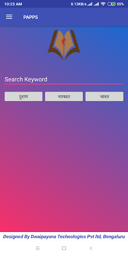 This App helps to search words in the indexes of Puranas and Mahabharata. It is immensely helpful for research scholars of Indian studies, particularly traditional Pandits. This is a pure Sanskrit App as 99.99% of the data is in Sanskrit.