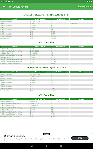 Quickly and easily scroll through all Pennsylvania lotto draw game results - no need to navigate through multiple menus to find game results.