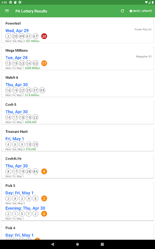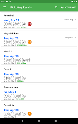 The best fast FREE Android app for Pennsylvania lottery results for the following draw games: