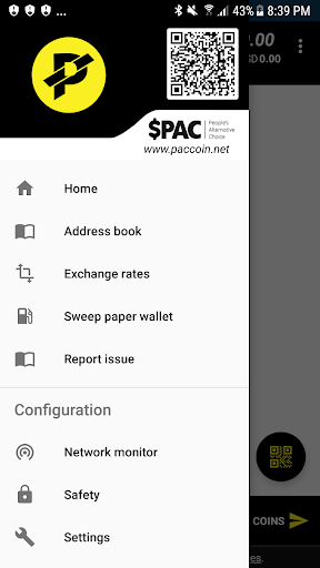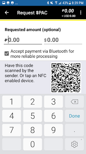 • Sending and receiving of $PAC via NFC, QR codes or $PAC URLs.