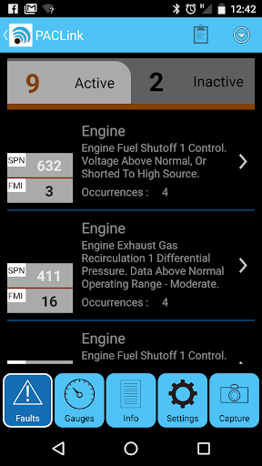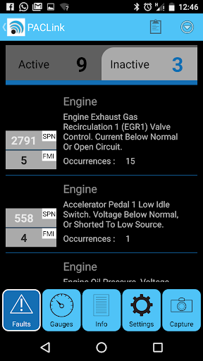 PACLink is a free application for the PACLink Service Adaptor that provides diagnostic information on engine, cab, transmission and ABS.