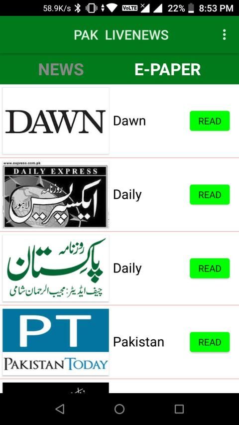All Pakistani live news channel and E-newspaper are available in this app.....