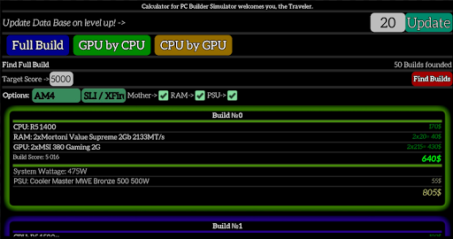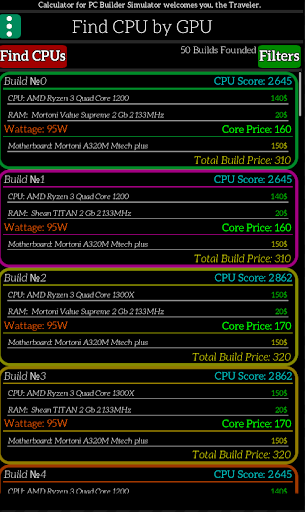The calculator made with help of PC Builder Simulator community and based on David367th Benchmark calculator and Lookup tables. Also great thanks to (Chroma) for BSOD tutorial.