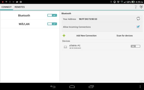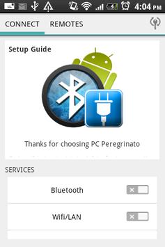 PC Peregrinato is a remote control solution for controlling PC remotely using Bluetooth and WiFi Connection. To use connection provided by PC Peregrinato you need to install Plugins Applications.