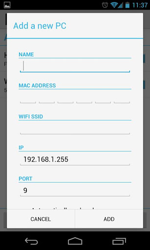 A simple Holo Wake-on-LAN application to wake up your ethernet-connected computer(s) using your phone! Able to automatically wake when connected to WiFi point with SSID that you specified. Works when your phone is on the same network as your computer and