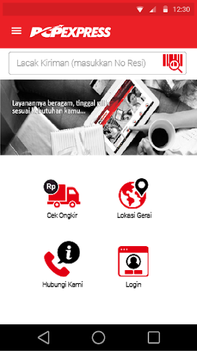 Aplikasi Jasa Kurir PCP Express yang dapat digunakan untuk Pelacakan Barang, Ceng Ongkir dan Lokasi Gerai, serta dapat digunakan untuk melakukan proses Penjemputan dan Pengantaran Barang Kiriman
