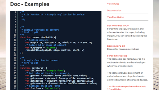 - Export html document to PDF.