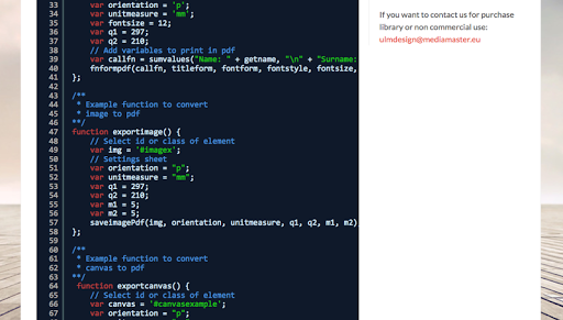 - Export HTML5 canvas to PDF.