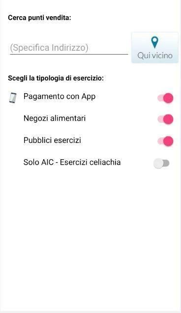 - Trovare gli ESERCIZI CONVENZIONATI vicino a te, anche quelli abilitati al pagamento tramite app, selezionandone l’opzione.