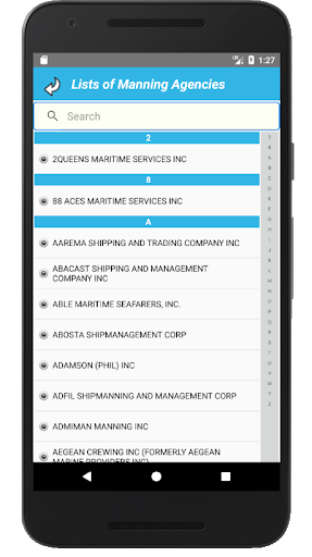 This is a simple app for the list of Manning Agencies in the Philippines as registered in POEA with valid license. In this app, you can make a call, send an email, visit agency respective website and the most special part is that you can search the location by one click.