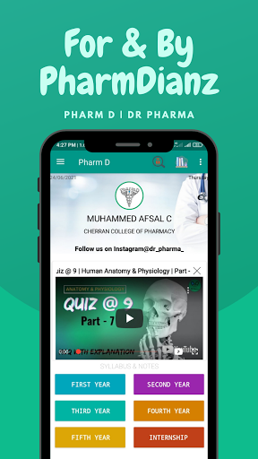 PharmD app : This application is designed inorder to help, aid and support the students, teachers and other regarded personalities related to this profession.