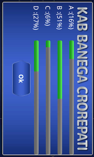 4) Audience poll - Graph of answers given by audience will appear on your screen.Sometimes answer may be wrong.But mostly audience poll is right.