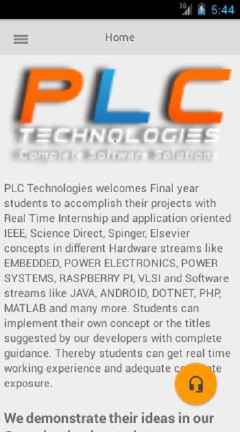 PLC Technologies welcomes Final year students to accomplish their projects with Real Time Internship and application oriented IEEE, Science Direct, Spinger, Elsevier concepts in different Hardware streams like EMBEDDED, POWER ELECTRONICS, POWER SYSTEMS, RASPBERRY PI, VLSI and Software streams like JAVA, ANDROID, DOTNET, PHP, MATLAB and many more. Students can implement their own concept or the titles suggested by our developers with complete guidance. Thereby students can get real time working experience and adequate corporate exposure.