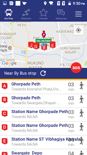 >User can see their nearby bus stops along with walking time.