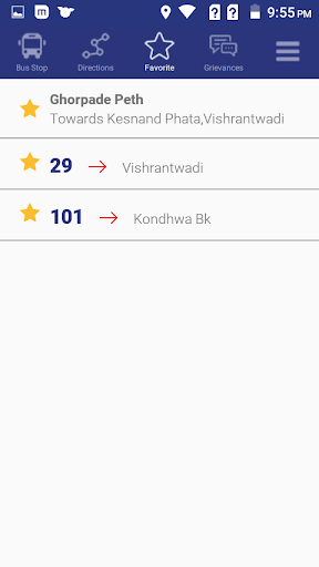 >User can set a favorite route from a favorite bus stop as per their travel requirement and directly access the bus details of his favorite route from the favorite menu.
