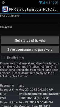 You can also enter your IRCTC username and password and it will get the ticket status of all printable tickets from your IRCTC account. All communication with your username and password is fully encrypted with SSL, RSA and/or AES encryption methods.