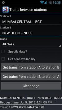 - Trains between stations (with an option to display seat availability of all matching trains in the same page)
