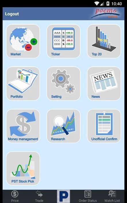 POEMS Mobile unleashes your trading by giving you the convenience of dynamic investment anytime anywhere. You can capture market opportunities with live prices, real-time trading, order status, and online portfolios. With easy access, safe, and secured trading environment, you will be in control of your investments wherever you are.