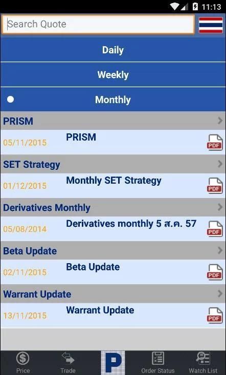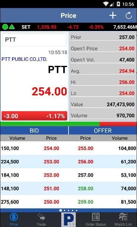 •ตรวจสอบราคาหุ้น ราคาอนุพันธ์ และราคาสินค้าอ้างอิงของสัญญาอนุพันธ์ (Underlying Assets) เช่น ราคาทองคำปัจจุบัน (Spot Gold Price) แบบ Real-time