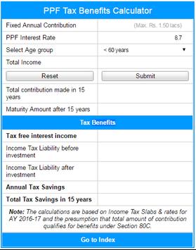 PPF Tax Benefit Calculator : Use this calculator to calculate tax benefits of opening PPF Account.